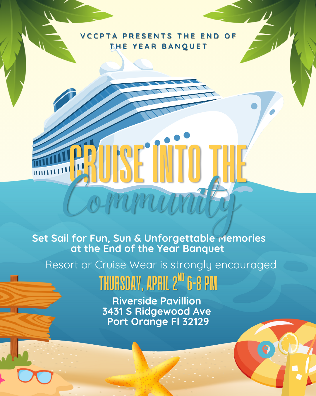 - EOY Banquet, April 2nd at 6 pm at Riverside Pavilion in Port Orange